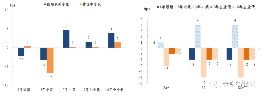 图6:2020年10月较9月末AAA级信用利差和收益率变化 图7:2020年10月较9月末等级利差变化