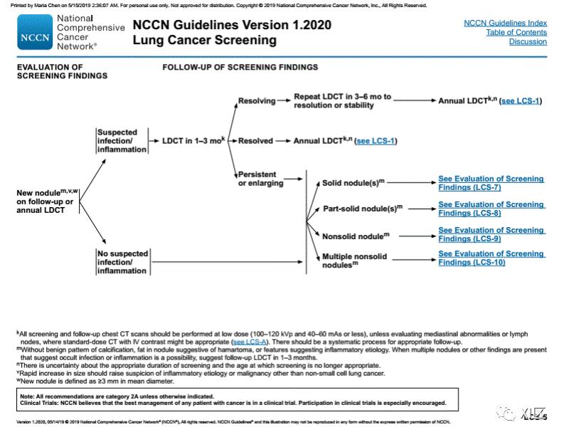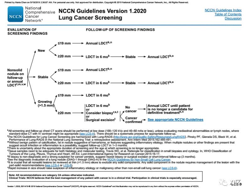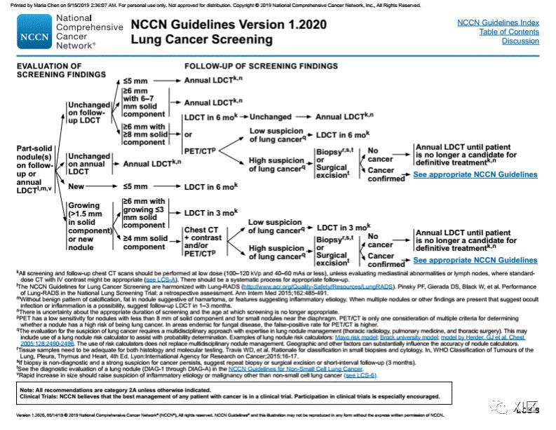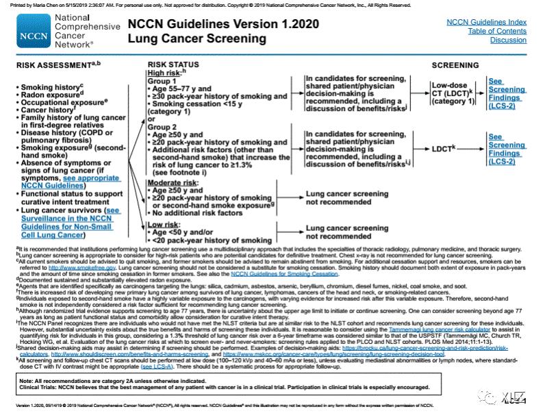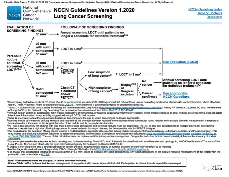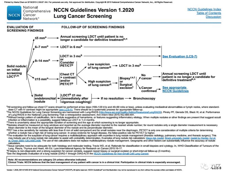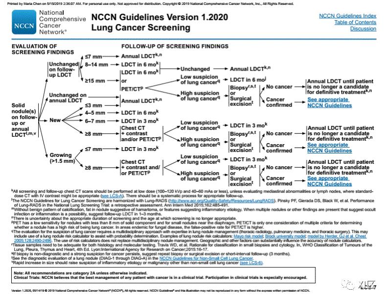 以下为2020年NCCN肺癌筛查指南,可供参考。