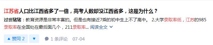 就高考录取率,尤其是一本高校、985/211大学录取率来看,江苏不仅没有因高教优势、中等级别的高考人数这两大因素,跻身高录取率小分队,而是时常被外界与河南、江西等高考一同提起。