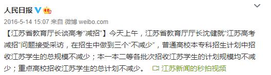 其中,江苏省的被抽调名额为3.8万,这一调整给当地学生和家长带来了一阵不小的焦虑,但江苏省教育厅的官方微博对此回应道,“普通高校本专科招生计划中招收江苏学生的总规模不低于去年”。