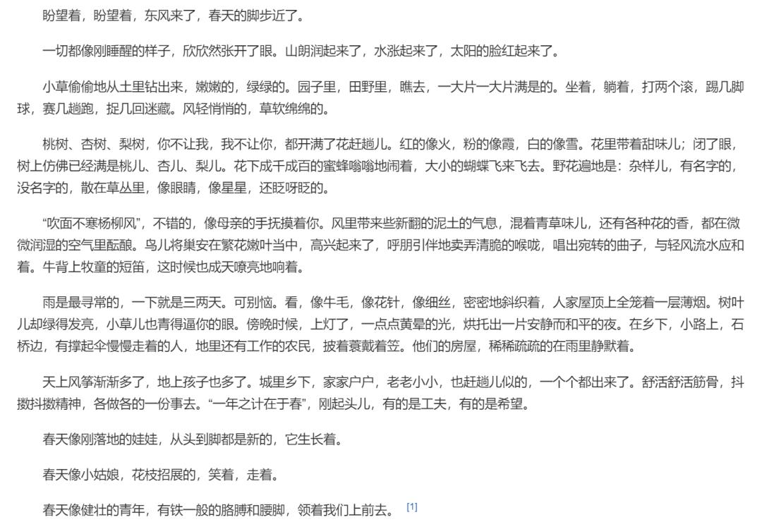再举一个大家都熟悉的一篇文章——朱自清的《春》作为例子: