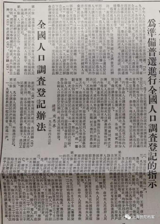 1953年4月6日,人民日报头版刊登全国人口调查登记的指示