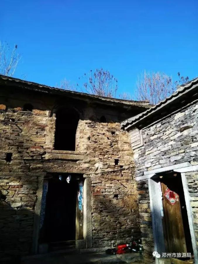 在村庄背靠的山岭上,村庄的北部有一隔堤寺遗址。相传早年的隔堤寺香火兴盛,游客不绝,它与淅川的香严寺隔江相望。村内有一处房屋建于清乾隆十三年,主房为阁楼式建筑,西厢房两间,门楼一座,全部利用当地石片干砌而成,看起来浑然一体。当年门前有26 个拴马桩。当年这户人家有马帮队,生意非常兴隆,光这房子就盖了5 年,盖好后为检验房屋质量,就用小石磨从房顶往下滚,如果有烂瓦的情况,说明工艺不行。