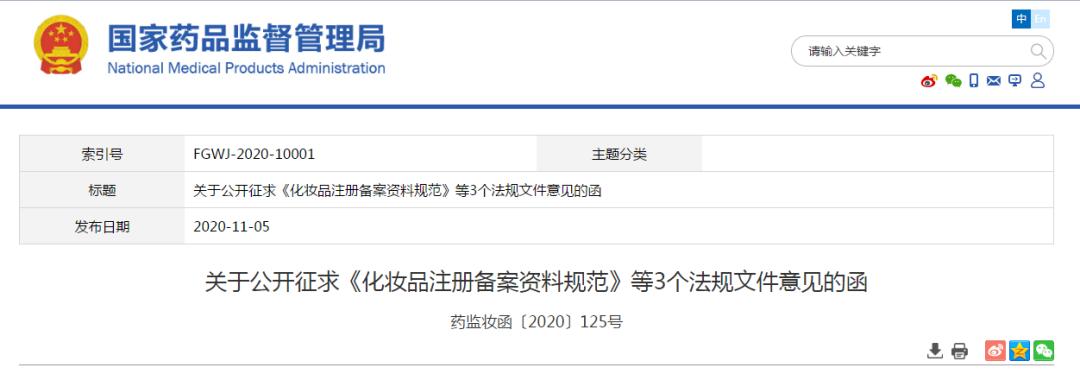 原标题:《国家药监局公开征求3份化妆品重要法规文件意见稿》