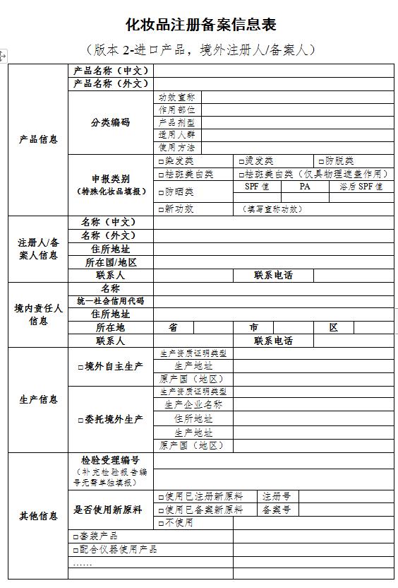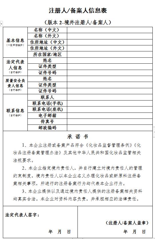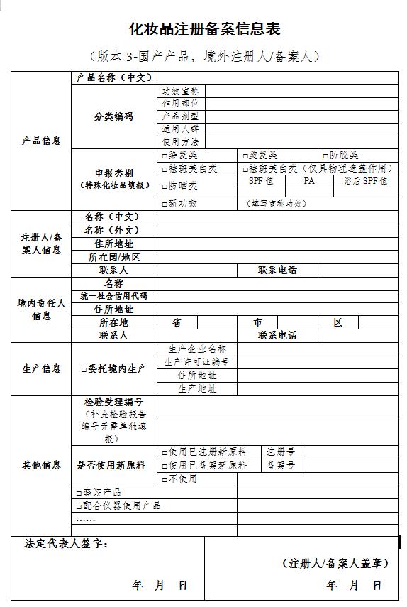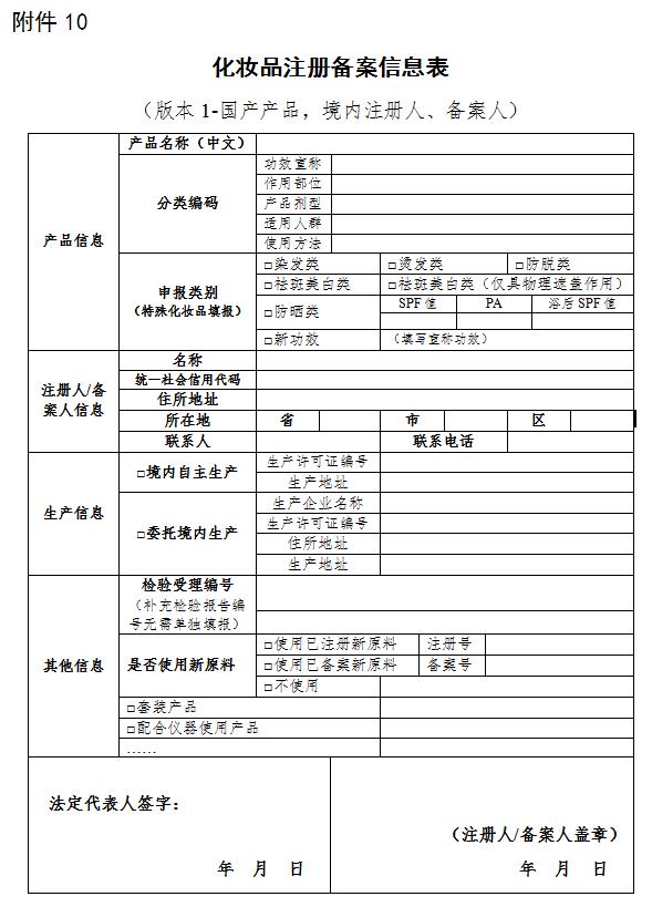 第二十五条(注册与备案信息表)注册人、备案人应当逐项填写《化妆品注册备案信息表》(附件10),并提交相关资料。