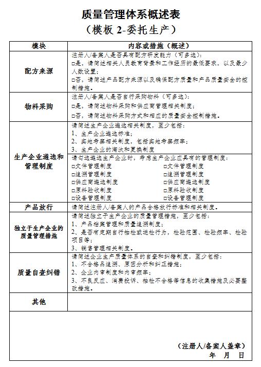 第十二条(质量管理体系概述要求)质量管理体系概述是对注册人、备案人质量管理控制能力和过程的总结描述,应当如实客观地反映实际情况。语言应当简明扼要,体现出质量控制关键点设置和日常执行管理要求。