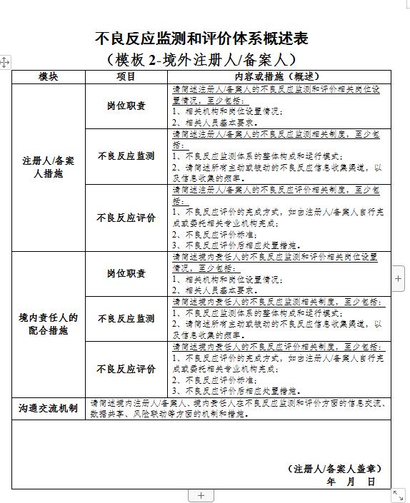 (三)注册人备案人不良反应监测和评价体系概述(附件3);