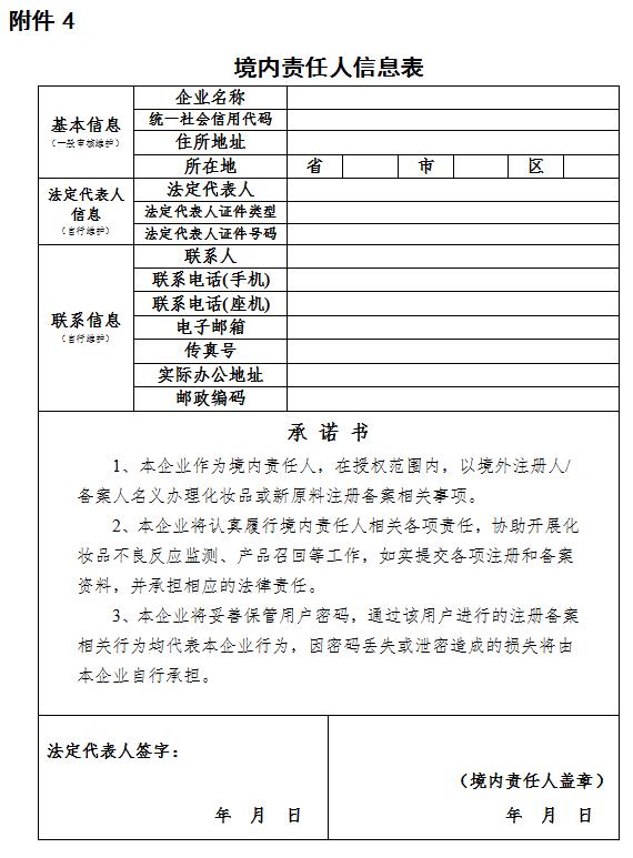(四)境外注册人、备案人应当提交境内责任人信息表(附件4);
