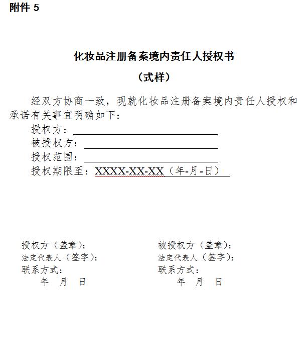 (五)境外注册人、备案人应当提交境内责任人授权书原件(式样见附件5)及其公证书原件;
