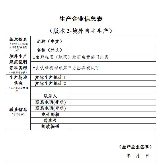 第二十条(增加生产企业信息)根据实际生产经营情况,如需增加自主生产或者委托境外生产企业的,可提交相关资料增加生产企业信息,必要时还需补充提交相应的质量管理体系概述。