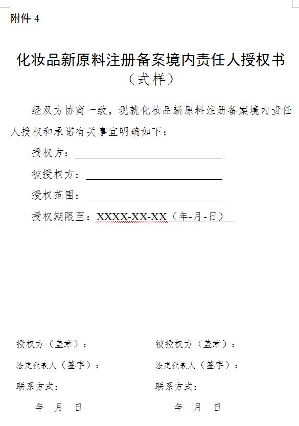 (三)(新原料授权)使用了尚在安全监测中化妆品新原料的,注册人、备案人或者境内责任人应当获得新原料注册人、备案人授权后,方可提交注册申请或者办理备案。