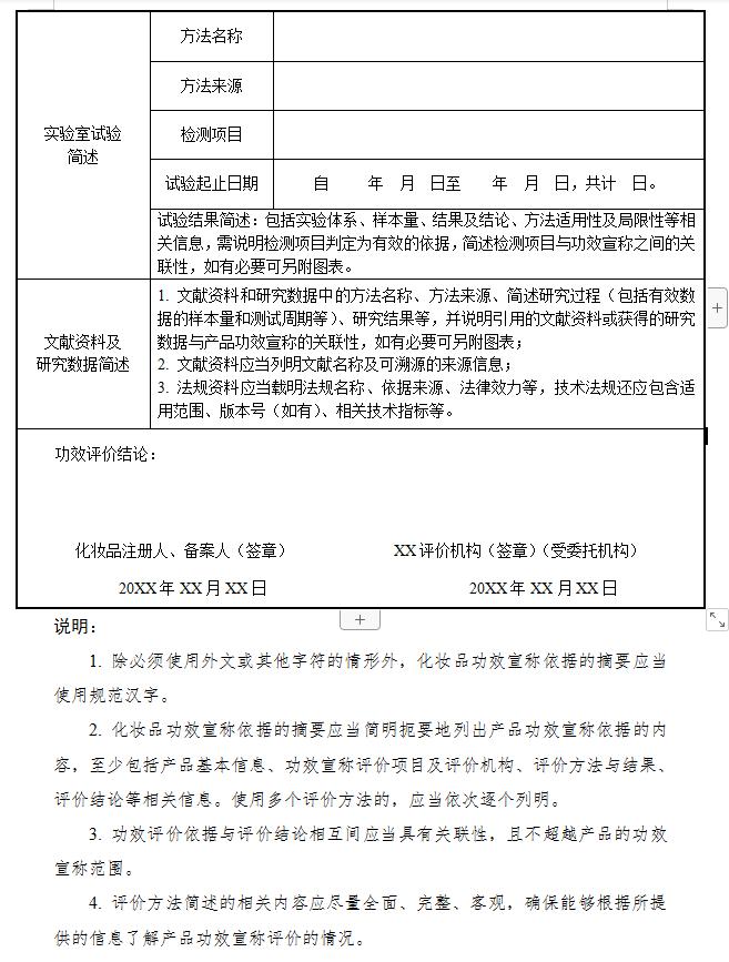 3. 化妆品功效宣称依据的摘要(式样)