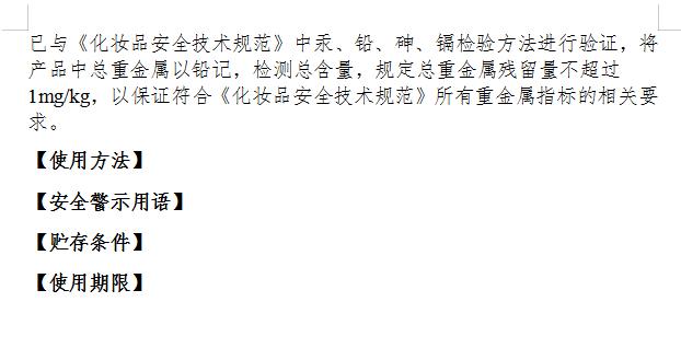 第八条(格式和显示要求)化妆品注册与备案文本资料中主体文字颜色应当为黑色,内容易于辨认,设置合适的行间距和页面边距,确保在打印或者装订中不丢失文本信息。
