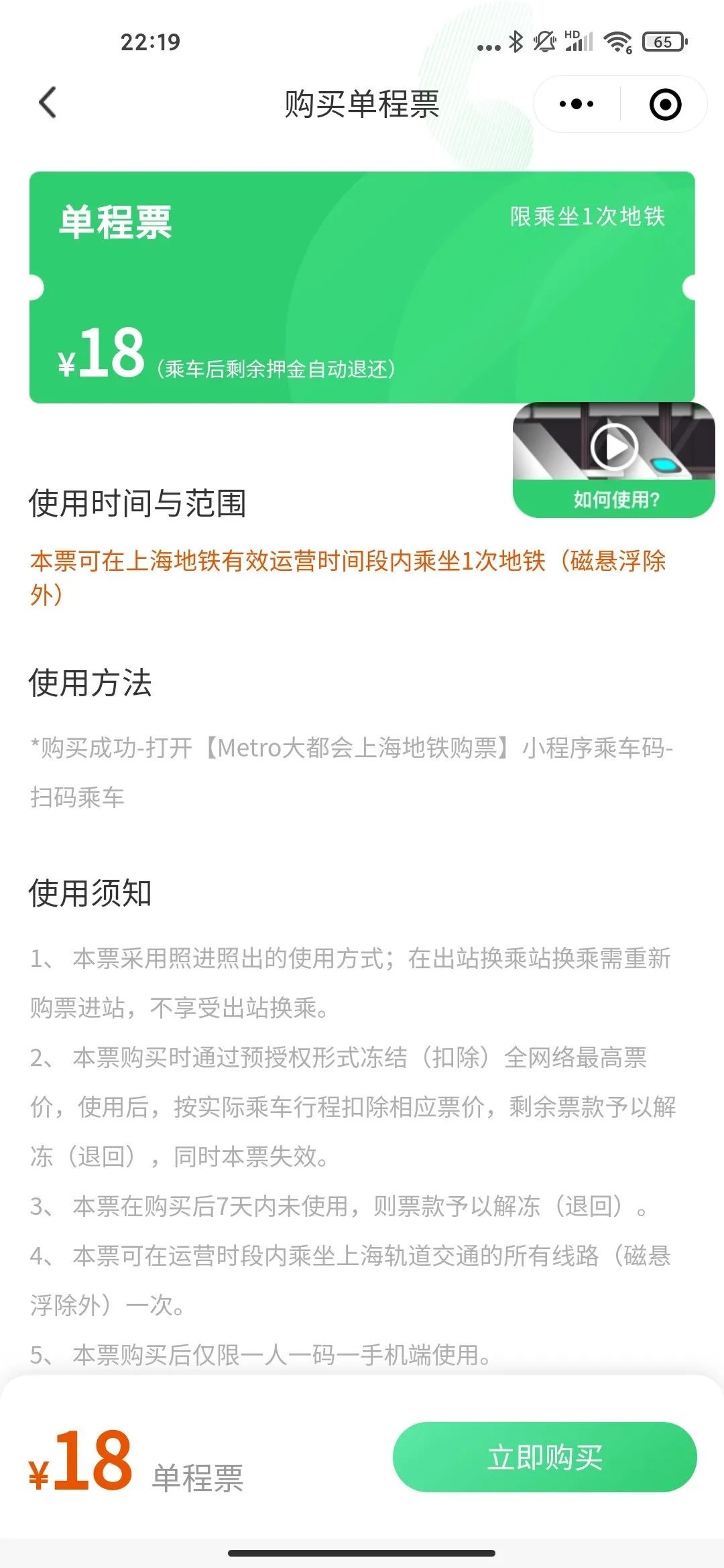 申通地铁集团说,上海地铁在进博会期间首推二维码电子单程票,在2号线虹桥火车站站和徐泾东站、17号线诸光路站,乘客只要通过微信、支付宝扫一扫,添加“上海地铁官方购票”小程序,在小程序中可以直接购买二维码电子单程票,刷码进出站。二维码电子单程票使用规则同实体单程票,当天可在运营时段内乘坐上海轨交的所有线路(磁悬浮除外)一次。详见↓