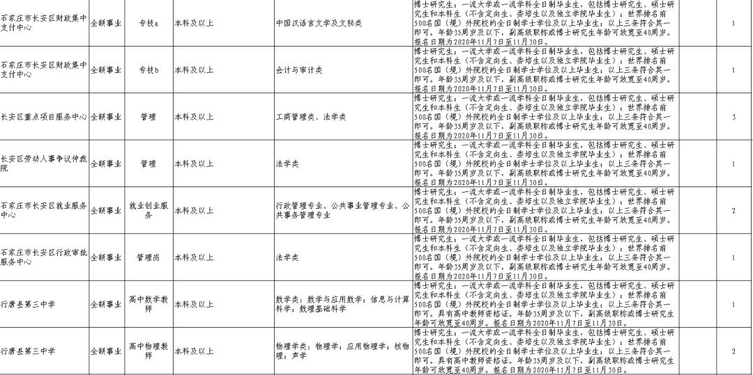 2.招聘岗位所要求的工作经历时间的计算方法是:从2020年11月7日算起,此前累计工作时间每满12个月计为1年。在校期间的社会实践(实习)经历,不能视为工作经历。