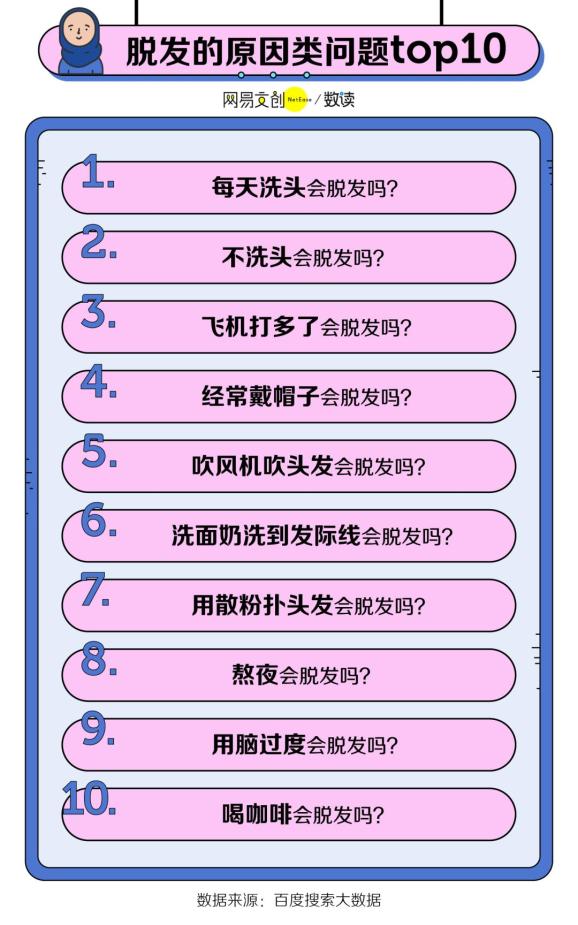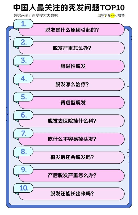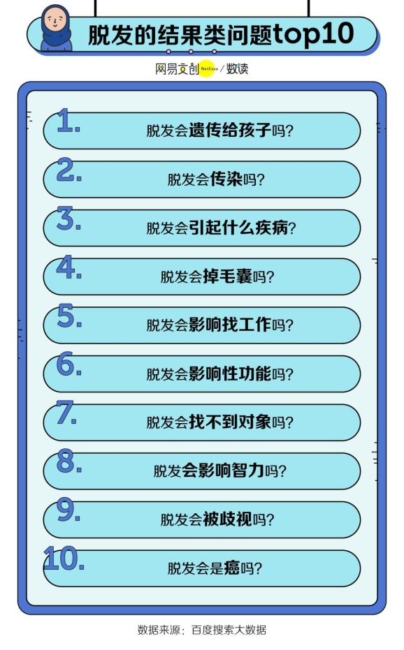 大家关注的问题,连起来能写成一部秃头史,在广州程序员还在搜索“头顶脱发是什么原因?”时,北京的程序员已经在搜索“植发后还会脱发吗?”