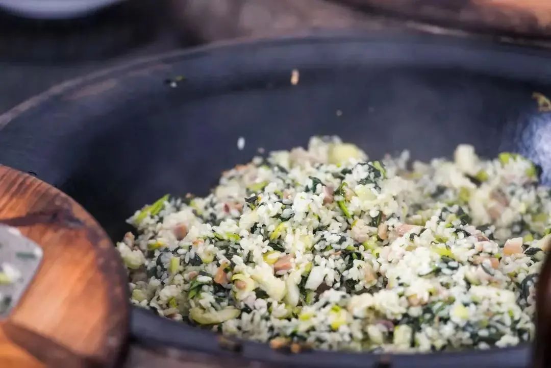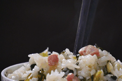 泡饭,是最懂上海人胃的。这被讥诮寒酸的吃食,透着上海人的“做人家”。一碗泡饭,过些小菜,做早饭当宵夜,筷子打着碗沿,一股脑“呼噜噜”灌进肠胃里,是极舒坦的。泡饭得用隔夜饭,滋味才正。冷硬的隔夜饭,撞上热水,泡饭才出落的漂亮。好的泡饭,汤是汤,饭是饭,米粒还未开花,水汤浊点米色,这是恰到好处的。泡饭要吃的舒爽,过泡饭的小菜,是顶关键的。早些时候,剩菜算是过泡饭的主力军。皮蛋、咸蛋、油条,也是过泡饭的常客,咸蛋,最好自然是高邮的,蛋白柔嫩,不涩,蛋黄橙红,夹一筷子就噗噗冒油。春天有咸菜豆瓣酥;入了夏,有人家会做酱油西瓜皮,清口也解暑;到秋天,就着萧山的萝卜干,炒盘毛豆,是再好不过了。毛豆子是好东西,不论是配萝卜干还是咸菜,都是吃不够的。红烧河鲫鱼的鱼冻,红烧肉的肉冻,颤巍巍,亮晶晶,擓一勺过泡饭,这是冬天的吃法,要是恰好家里有冬笋,咸菜冬笋炒肉丝,那更是过泡饭的利器。要是自家熬的带有小半瓶虾籽的酱油,别说要皮蛋油条,光是放些酱油,就能过泡饭,再点点猪油,香透了。腐乳过泡饭,妙极。榨菜过泡饭也是可人。菜场里厢买整颗榨菜,切碎炒炒,咸鲜口,混着汤水能过二三碗泡饭。也有自腌酱菜的,多是大头菜和酱瓜,易做耐存,也好过泡饭。煎鱼过泡饭,塞在泡饭里浸软,更有风味。 煎荷包蛋淋上酱油,油面筋塞肉红烧,笋丁,肉丁,豆干,花生熬份上海辣酱,也都能过泡饭,上海人啊,果真是离不开酱色的。还有油汆果肉,苔条花生,清风鳗鲞,咸鱼蒸肉糜,黄泥螺,宁波烤菜……这过泡饭的小菜,是说也不完吃也不尽,真要论起来,满一桌怕是也放不下。谷类之中,白米最佳,一碗猪油拌饭,吃了感激泪流。从前手头不宽裕,不常有肉吃,一勺猪油,一碟酱油,拌着饭吃,胜似山珍海味,要是加上荷包蛋,那可够回味好久了。做猪油拌饭很简单,一碗热饭,一块猪油,一勺酱油即可。新米做成的饭,圆润饱满有嚼劲,挖一块猪油按进饭里,再盖上,猪油融化,加入一点点酱油,咸淡恰到好处,用筷子快速搅拌均匀,油荤鲜香,不必配菜,就能吃两碗。还有种做法,炼完猪油的锅不洗,倒入米饭,靠着余温翻炒几下,再放点酱油调味,酱香油香,一股脑全涌上来了。猪油得是猪板油滋味最正,浓香不油腻,吃口滋润。拌饭里再添些猪油渣,一餐也就别无所求。八宝饭,通常是筵席的压轴,甜糯厚重,能撑场面。江南一带吃得多,上海尤盛,也就做得格外精致。做法简单,配方大同小异,滋味却天差地别。没经验的,糯米蒸得糊烂,没咬劲,粘腻的很,好的八宝饭,不烂不散不腻,米粒儿透着亮。要扎台型,就得不惜工本。糯米少说要泡四五个钟,蒸熟了,趁着热,加猪油和糖拌匀,米粒分明,卖相才好。拌米,也关乎成败,猪油、糖、糯米,比例有讲究。听老师傅讲,美新点心店十斤米拌一斤油。我爱吃美新的八宝饭,全为猪油。也有拌素油的,这是“健康至上”派,可素油不出香,滋味哪能对。八宝饭糖油调的漂亮,才能蒸的色面锃亮,八宝是不做定数的。方便平常的食材最讨喜,糯米、赤豆沙是必需,其余凭自家吃口习惯,莲子、红枣、核桃仁、瓜子仁、枸杞常见,金橘脯、桂圆肉、蜜樱桃、糖冬瓜有口彩,也挑着添,青红丝,老上海晓得,寓意长寿,疑似加色素,不健康,被取代了。王家沙卖过蛋黄肉松八宝饭,咸口的,我不爱吃。八宝饭,还是得吃甜的。屋里厢烧酱油炒饭,一锅冷饭,猪油热锅,下黄豆酱油,小囡们是一哄而上抢着吃的!隔夜饭一起上锅蒸,加热后米饭更容易把酱油色炒匀。炒锅开火加2勺猪油,米饭炒散,淋几勺老抽,关火翻炒,否则容易颜色不均匀,靠余温炒匀酱色,再撒些白砂糖提鲜味,加葱花提香,当米粒松散,就该出锅了。切记不要用锅铲按压米粒,米粒,以胖为美。像模像样挑个漂亮盘子,把酱油炒饭倒扣在盘子里,色、香、味还有仪式感,就齐了!如今烧酱油炒饭,配料可是多了不少,加些腊肠,切一些洋葱末、香菇末,放入油锅里炒到散发出香味,再加入米饭,倒酱油,加点盐调味即可。不过配料不宜多加,多了容易抢味,反倒衬托不出炒饭的香味了。在上海,若是比价钿,秃黄油捞饭是最有发言权的。所谓秃黄油,就是在大闸蟹季节用纯粹的蟹黄蟹膏储存下来的螃蟹精华,拿来拌面拌饭,那叫一个满足。捞饭看着简单,但内有乾坤,包括大米的选择、烹煮的时间与方法、蟹的大小、蟹膏与蟹黄的配比。吃蟹在古时是件“有钱有闲”的事情,尤其是这道苏州名菜,大户人家想在没有蟹的季节里吃上蟹解馋,那便用猪油封罐藏秃黄油来吃。现代人不接受大油大腻,便用植物油熬出的蟹油来做,选现拆的纯蟹膏蟹黄,配特制的蟹油,一股子繁华。小份秃黄油拌上东北优质稻花香米,调配后的几滴意大利黑醋柔和解腻,吃到嘴里后,膏黏、米糯,口味香甜,回味无穷。黄鱼煨饭是宁波吃法,黄鱼面火了之后,煨饭的名声也大了起来。米饭吸足了黄鱼汤汁,鲜香扑鼻,如果在场有宁波人,他一定会教你洒上少许胡椒粉,这个独家小秘诀可谓是黄鱼煨饭的“点睛之笔”。提咸酸饭,年纪轻额,多半勿晓得。要是讲菜饭,才恍然:“喫过啊,米道交关好。”咸酸饭讲究应季。菜园子有什么菜,饭里就添什么菜,挑出水少的,才合用。春天添荠菜、草头、马兰头、蚕豆、香乌笋叶子;夏天加些豇豆茄子;入秋,洋山芋、毛芋艿、小青菜都是好物事;寒气要溜进屋里厢,萝卜咸菜,烧个咸酸饭,顶暖身子。青菜四季都有,吃口最好的,是打了
