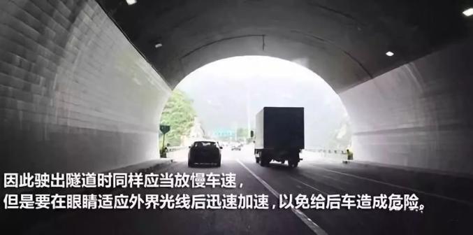 车辆进出隧道的瞬间光线变化大,对驾驶人的视觉冲击大,因此在行经隧道时,驾驶人更需要提高警惕,注意驾驶技巧与操作方法。