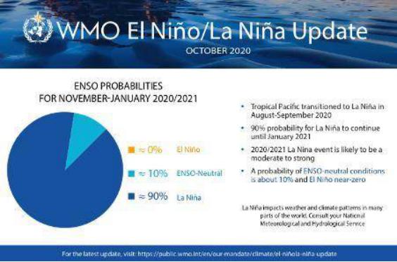 世界气象组织则在新版《全球季节性气候更新》中指出,拉尼娜现象已经形成,影响世界诸多地区的温度、降水和风暴形式。