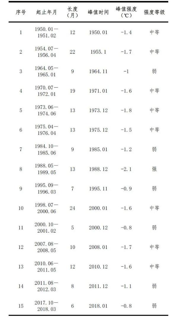 “拉尼娜”现象一般两到七年发生一次,指的是赤道中东太平洋海水表面温度与常年同期相比,大范围偏冷,并且强度和持续时间达到一定条件的现象。