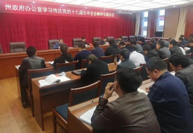 11月10日,州政府办公室召开学习党的十九届五中全会精神专题会议。州政府办公室相关负责人主持会议,并做专题解读。