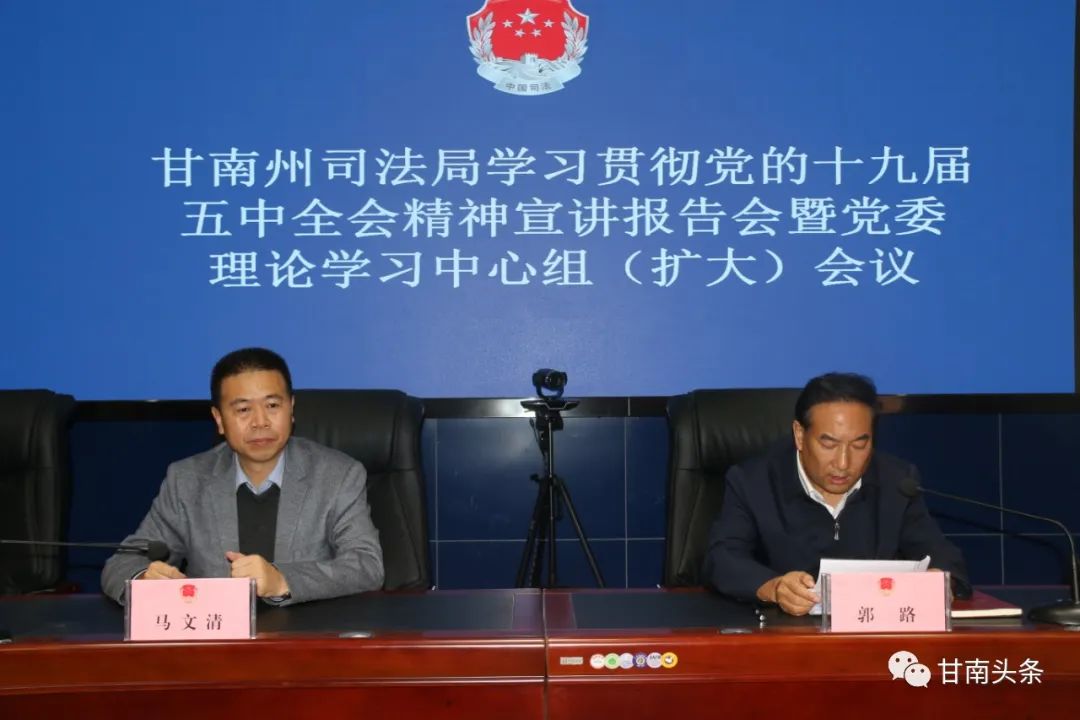 11月12日下午,甘南州司法局举行学习贯彻党的十九届五中全会精神宣讲报告会暨党委理论中心组(扩大)学习会。会议邀请甘肃民族师范学院马克思主义学院院长马文清教授以《擘画新蓝图开启新征程》为题作了十九届五中全会精神专题辅导报告。