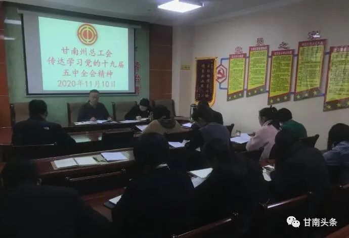 11月10日上午,甘南州总工会召开干部职工学习会,传达学习党的十九届五中全会精神。