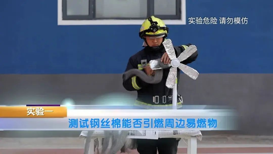 那这钢丝棉点燃后,真的这么危险吗?消防人员配合我们进行了一组试验。