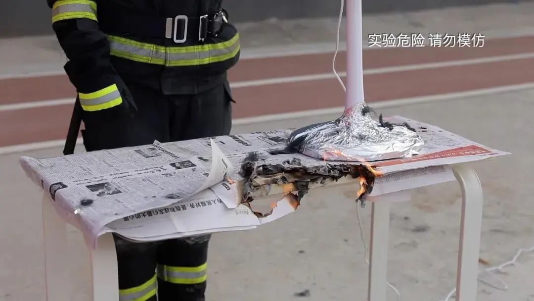 为了印证专家的说法,消防员又进行了一组试验。消防员用1.5V电池包裹钢丝绵,发现它变得十分烫手,但没有燃烧起来。