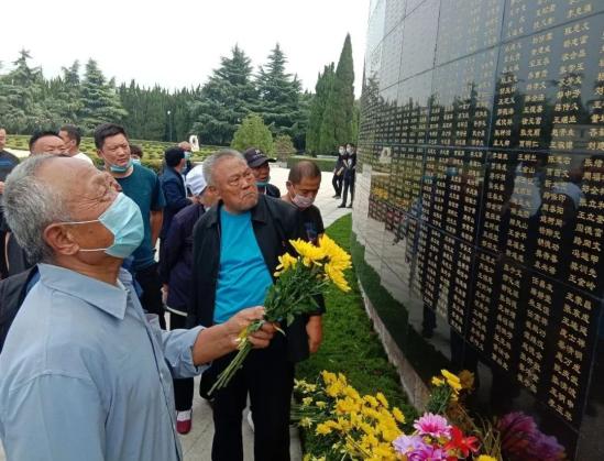青山处处埋忠骨,黄河滚滚慰英魂。9月25日,在全国第七个烈士纪念日来临之际,东昌府区组织81名烈士家属到开封市烈士陵园进行祭扫。站在镌刻有4650个烈士名字的英名墙前,全体人员肃立、默哀,为英烈敬献鲜花。烈士亲属围拢着仔细查看、寻找亲人的名字,他们哭喊、抚摸着亲人的名字,跪在墙下久久不愿起身。72年过去了,这些烈士熠熠闪光的名字终于被镌刻在英名墙上,成为永恒。
