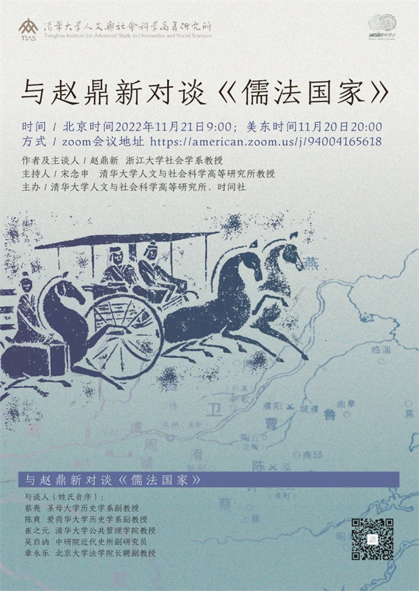 浙江大学社会学系教授、芝加哥大学Max Palevsky荣休讲席教授赵鼎新,长期致力于中国国家形态的历史社会学研究,其英文专著The Confucian-Legalist State: A New Theory of Chinese History(牛津大学出版社出版,2015)获美国社会学学会2016年度政治社会学最佳著作奖。本书是在历史社会学经典理论基础上的一次重大推进。借着本书中文译本的出版,我们邀请赵鼎新教授分享本书观点及研究心得。同时,五位来自历史学和社会科学的学者,也将围绕《儒法国家》中涵盖的丰富问题展开对谈。