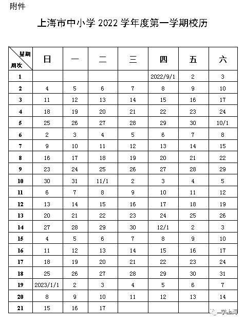 统一于2022年9月1日开学,2023年1月17日结束,全学期共21周。