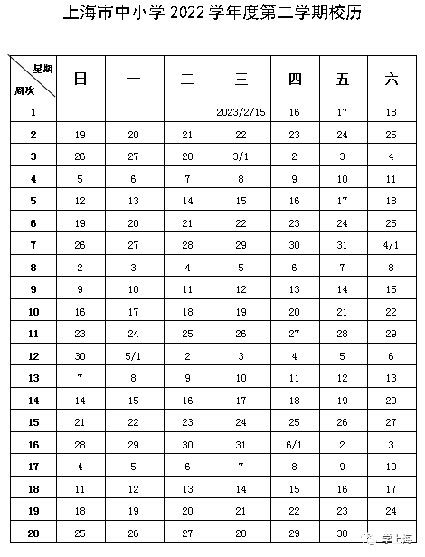 统一于2023年2月15日开学,6月30日结束,全学期共20周。