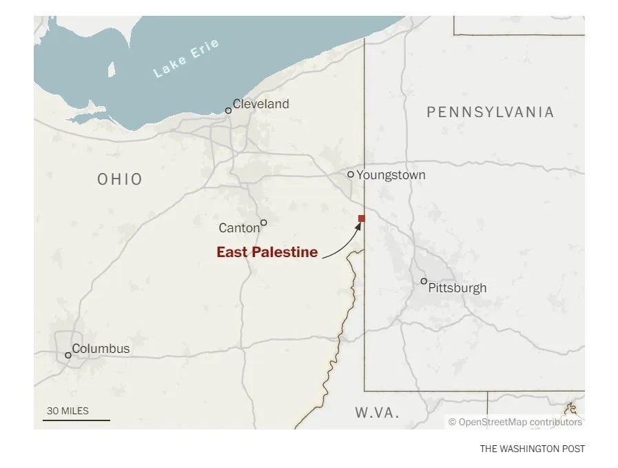 当地时间2月3日晚,美国俄亥俄州和宾夕法尼亚州的交界地带东巴勒斯坦地区发生一起列车脱轨事件。