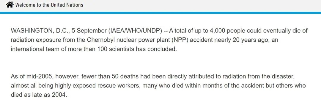 联合国对切尔诺贝利事故报告截图