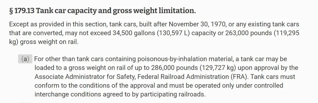 可知美国联邦法规第49篇第179条中对压力油罐的容量规定