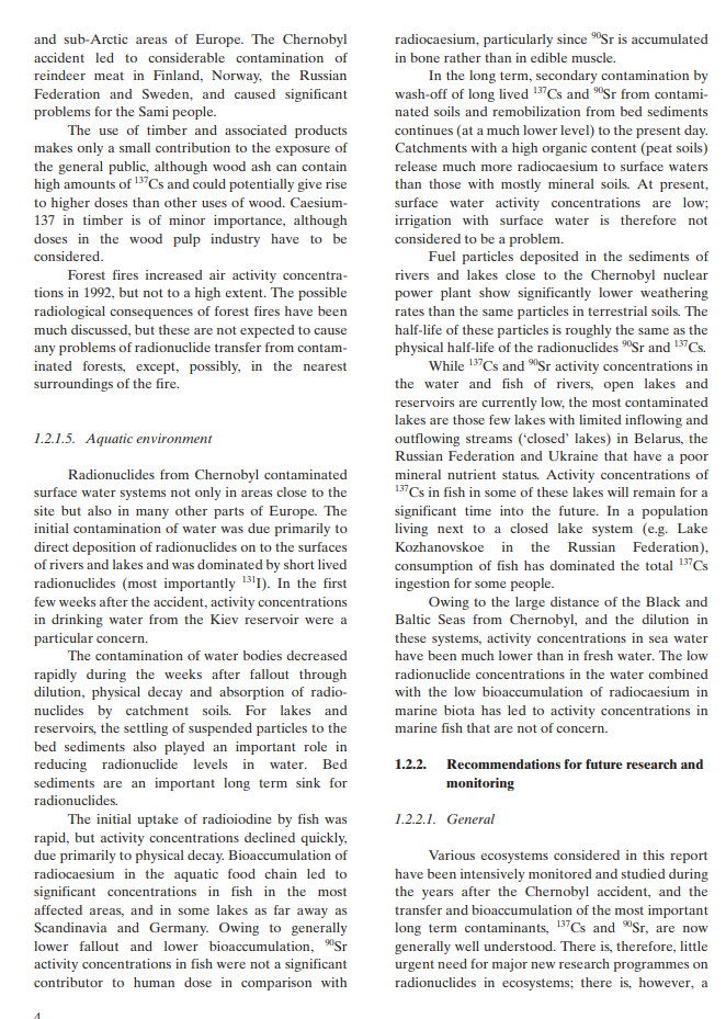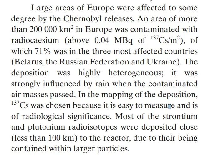 “切尔诺贝利事故的环境后果及其补救措施:二十年经验”报告部分截图