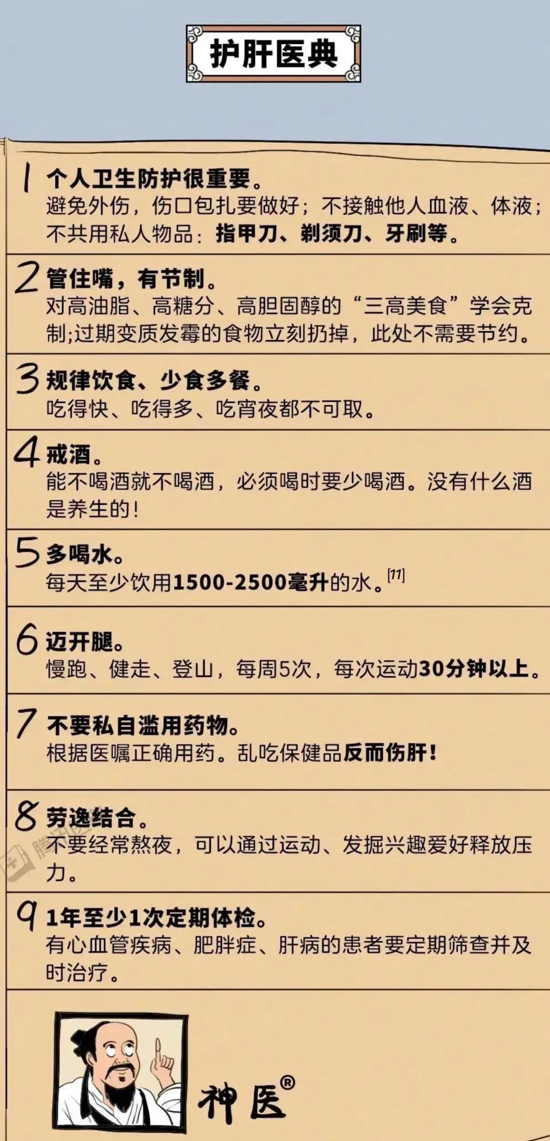 面对各种各样的“敌人”,肝脏护卫队一直在兢兢业业守护我们的生命及健康。另一方面,我们也应该,多关爱肝脏护卫队,守护好肝细胞的健康。在此,典哥专门为大家准备了一份《护肝医典》,希望大家都能守护好自己的肝细胞护卫队,拥有一个健康的肝。