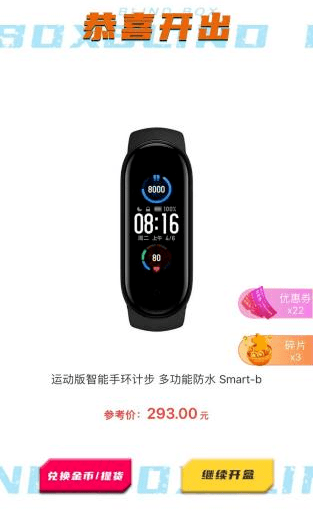 记者花费58元体验了其中新人试玩盲盒,抽中了一款标价293元的智能手环,相同样式的手环在淘宝售价仅为19.8元,连293元标价的1/10都不到。“中奖”后可选择“提货”或“兑换261金币”,“金币”可用于在App商城内兑换相应商品,兑换目前售价4000元左右的iPhone 12需要19万金币,按每次58元可兑换261金币估算,换回iPhone 12约需要花费42222元,超过iPhone 12实际价格的10倍。