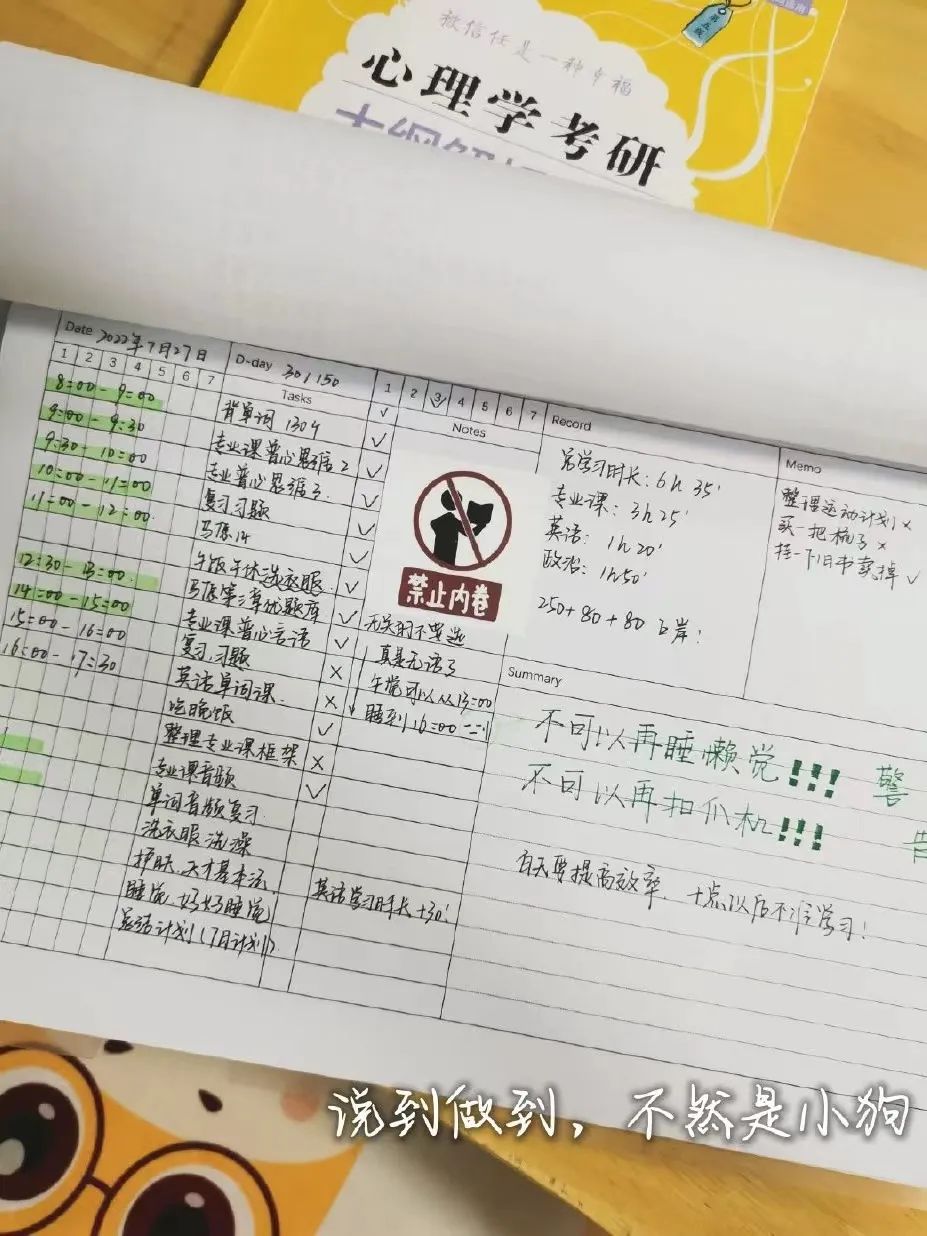 我的计划是从早晨8 点学到晚上 10 点钟,中午回家吃饭,午休半小时。坚持一段时间后,我在备考时遇到了很大困难,我发现自己很拖拉,学习计划没有办法持续推进下去。这时候我就会去反思,到底是我个人学习能力不行,还是原来设定目标是不太适合我,不是我真正想去做的?