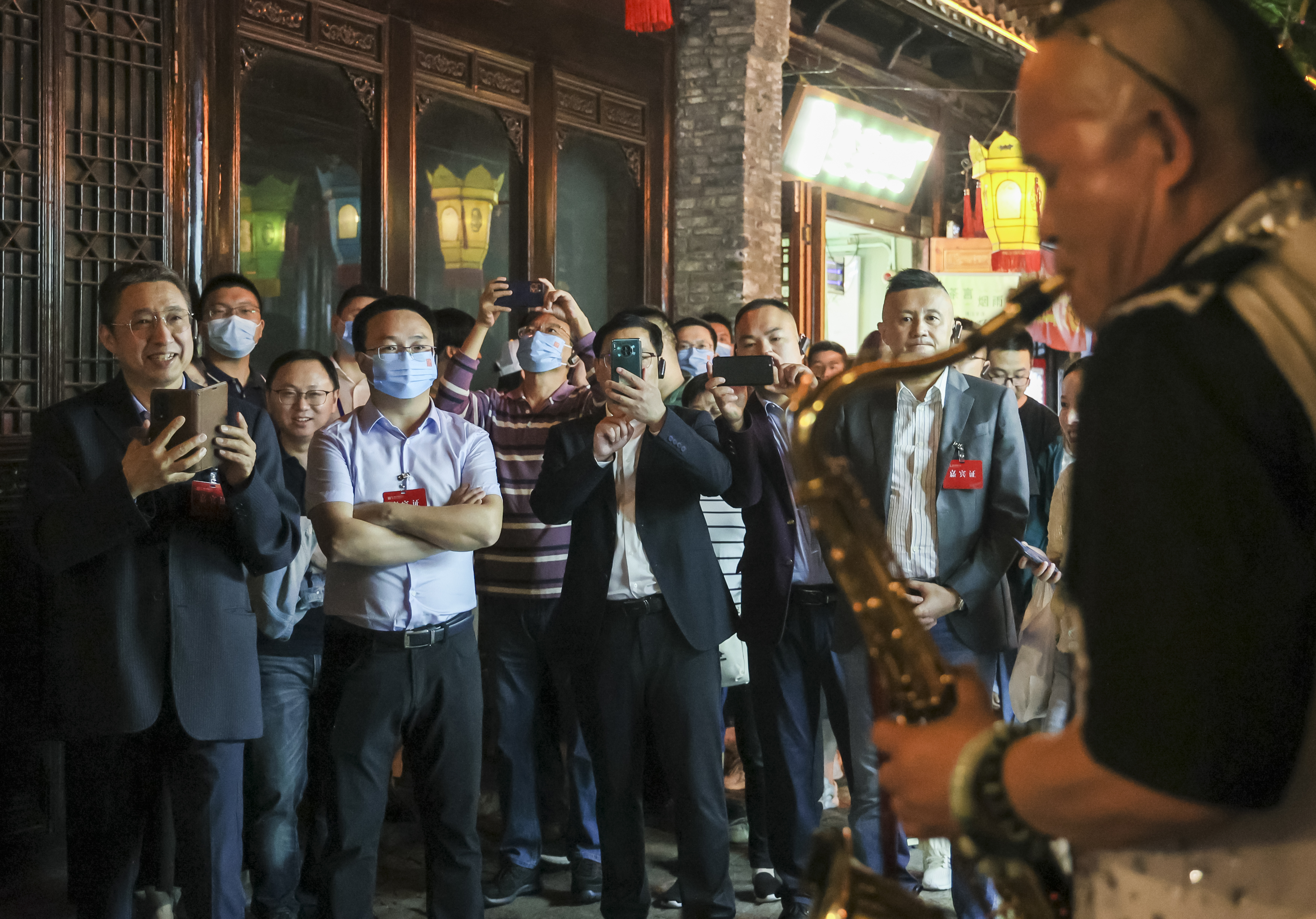 从古街老巷到网红夜市,从非遗文化展示到时尚音乐盛宴,从城市肌理的追溯到面向未来的眺望……5月20日晚,参加“情满镇江 共襄发展”第三届江苏发展大会“镇江行”的嘉宾乡贤走进历史文化街区西津渡,来了一场沉浸式夜游,感受着镇江城市跳动的脉搏。
