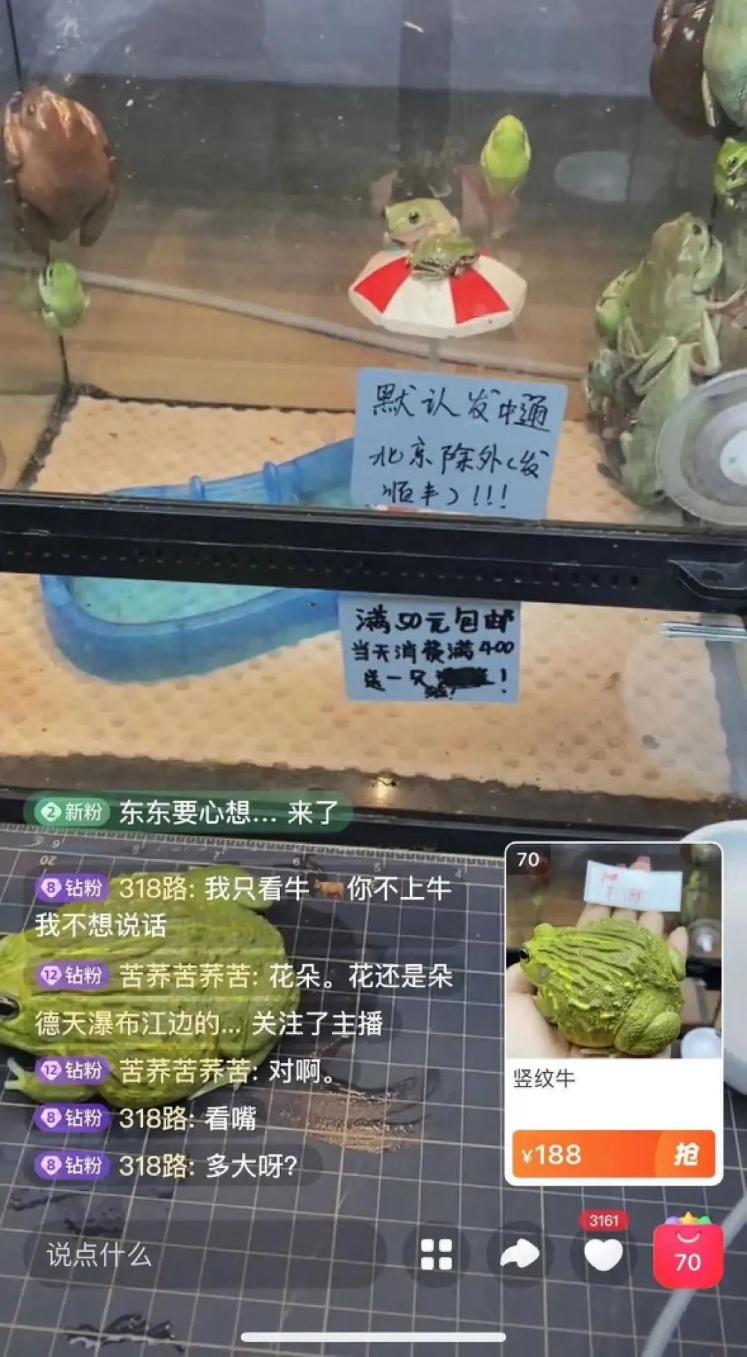 这个直播间里甚至不用主播,蛙就是最好的台柱子。也不要小瞧区区6000+的观看量,要知道逛爱马仕的人不一定买爱马仕,但凡是能进到这种小众宠物直播间的人,几乎都是冲着成交来的。