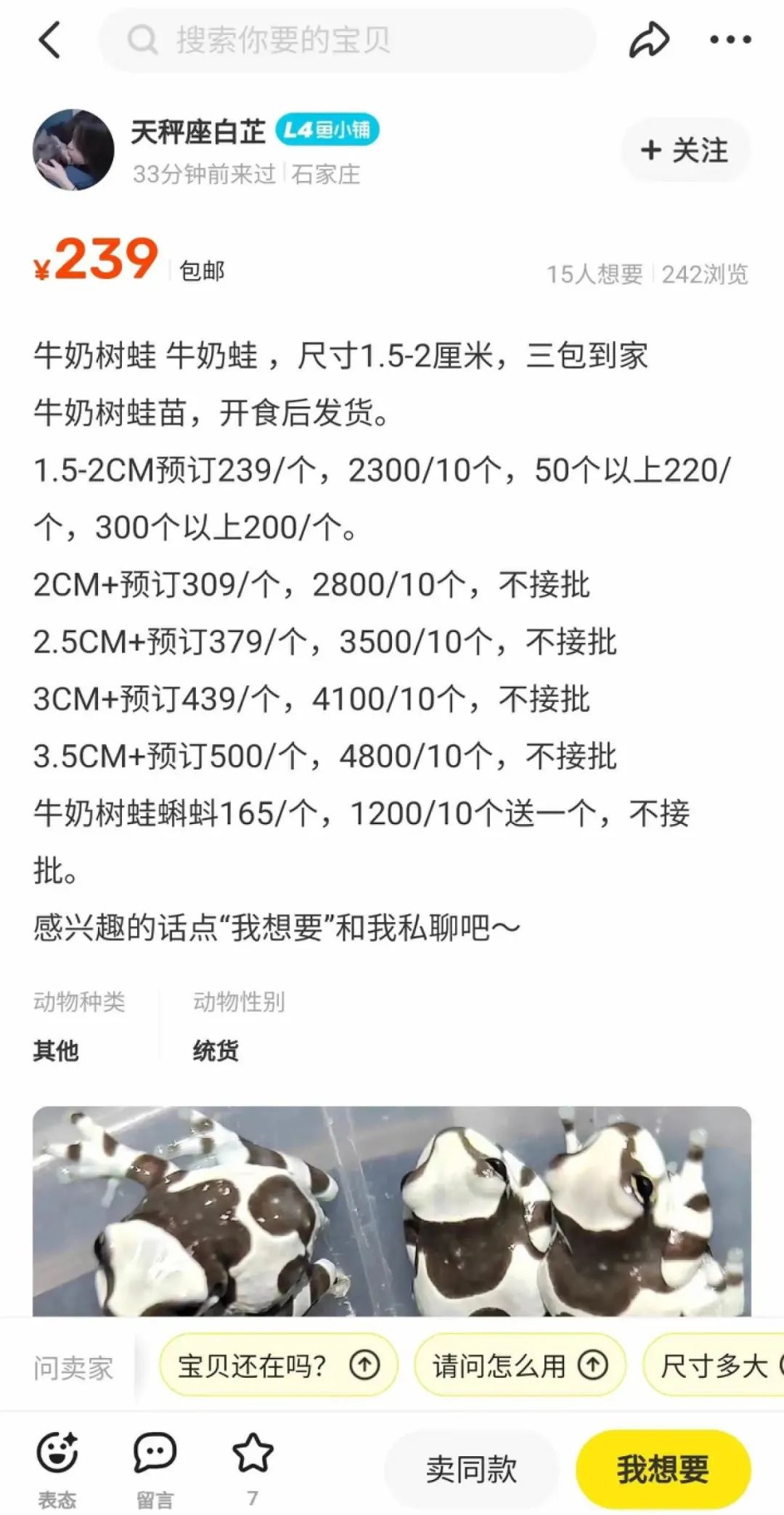 这种体型娇小的树蛙,虽然单体价格不贵,但想要获得稀有品种,你真的需要像买爱马仕一样预定+配货。