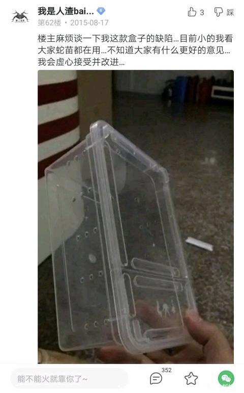 传说,人渣盒是一位ID叫“人渣”的朋友发明的在bal看来,树蛙是最好入门的爬宠之一:“我最早养龟入门的,爬宠很好养,不用溜,喂食物,保障温度就行,也不挑环境,尤其是树蛙,养蛇养蜥蜴还得用保温箱,树蛙玻璃箱就行。”