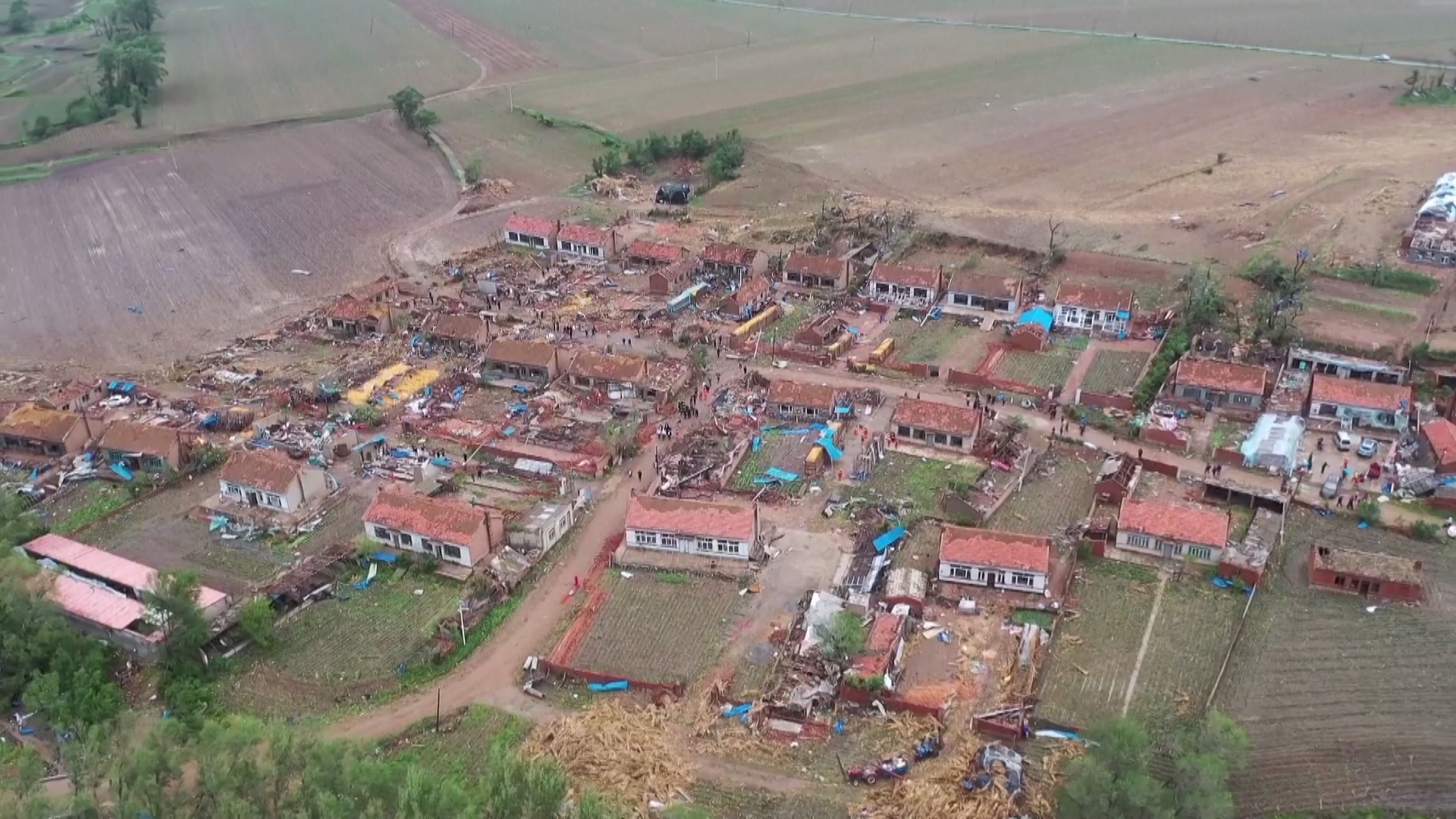 2023年6月1日,辽宁铁岭,龙卷风使当地居民房屋受损。 视觉中国 图