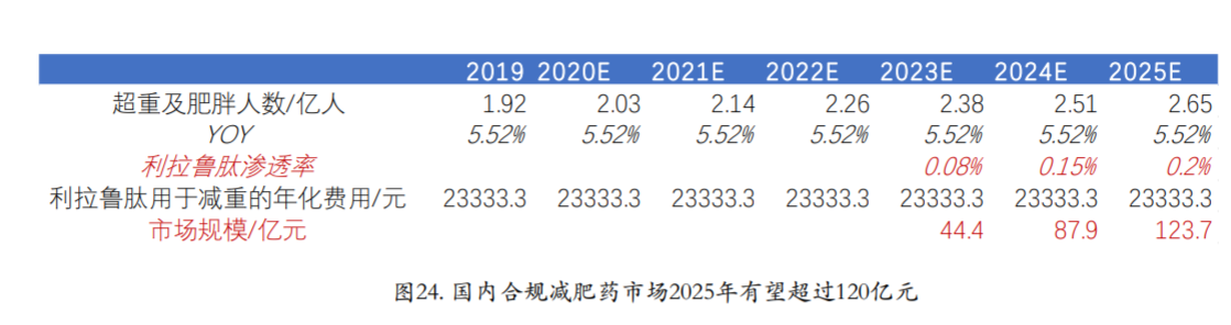小小的针剂掀起的是百亿减肥市场的风浪。财通证券研报预测,2025年我国18岁以上超重及肥胖人口或达到2.65亿人,预计2025年减肥药合规市场有望超过120亿元。