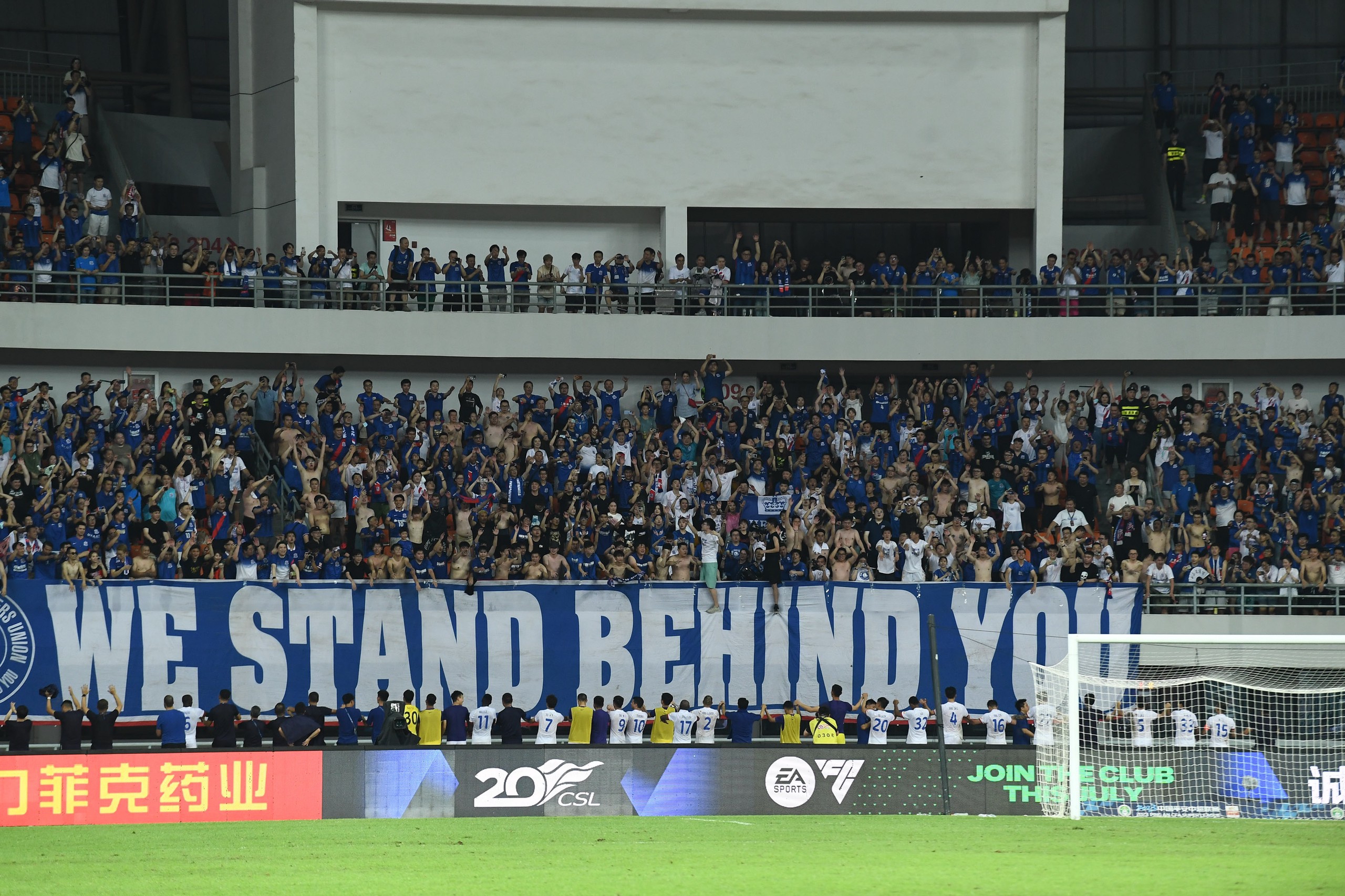 这是申花连续两年前往湖州比赛,本场数千名申花球迷也来到湖州助威,声势完全压倒主队。