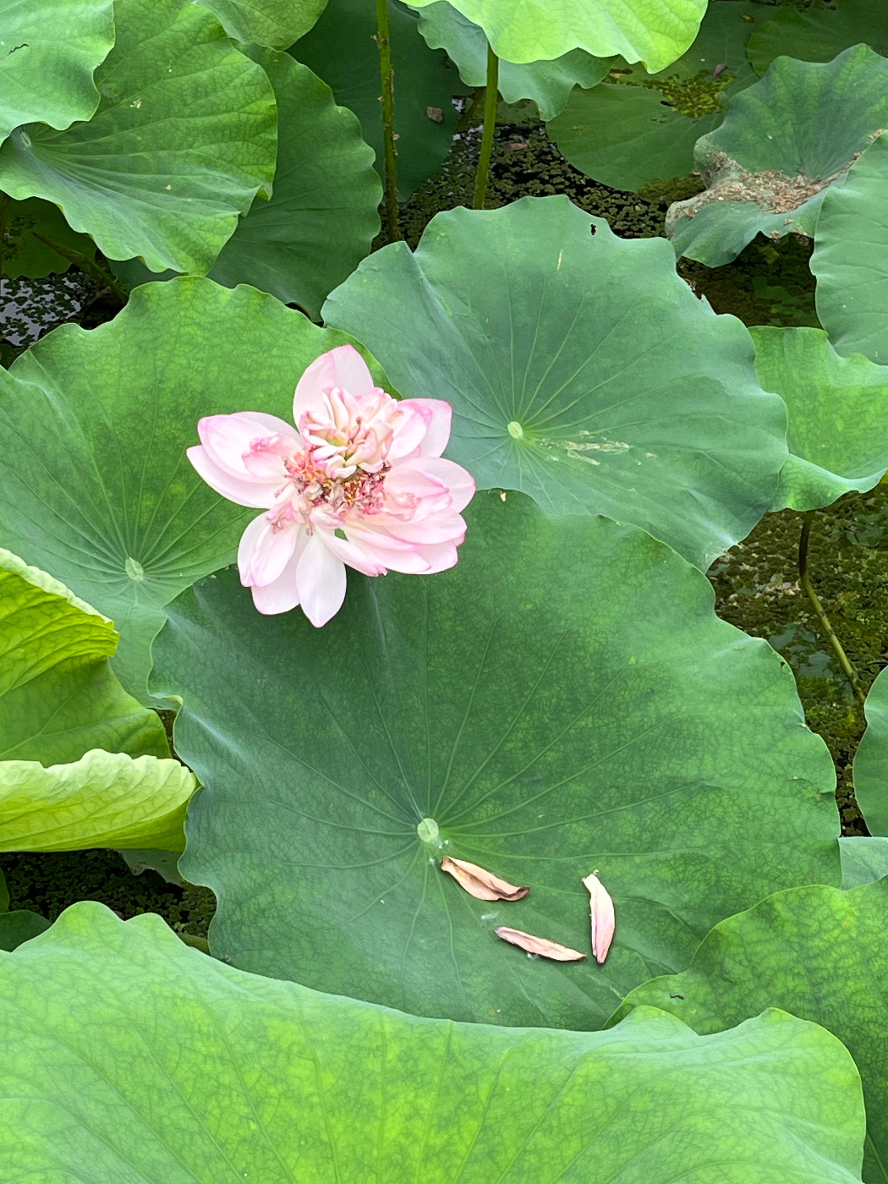 天热,可以摘一片荷叶顶在头上。最恼人的还是莲花、莲叶的梗,表面布满了小刺。这是植物千百年来进化出的一种自我保护机制,就像枣树的荆棘、榴莲的气味。小艇划过荷塘,孩子们的身上留下一缕缕细密的划痕,没有人在乎这些。