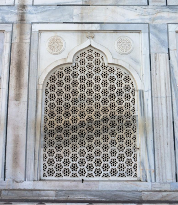 Jaali(贾利)在印度是“网”的意思,在建筑上,以砖、水泥、陶土为材料,通过错综复杂的排列组合成美丽的格状屏风,同时为室内遮阳通风。目前印度现存的“贾利”建筑作品最早可以追溯到12世纪初,著名的泰姬陵就有大量的大理石贾利。