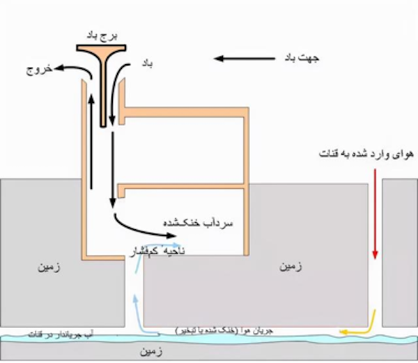 风塔降温的原理有二。一是利用热力环流,风塔下方一般都有一个蓄水池,水池周围的温度较低,与通过风塔的自然风形成压差,再将凉爽的风送入各个房间。